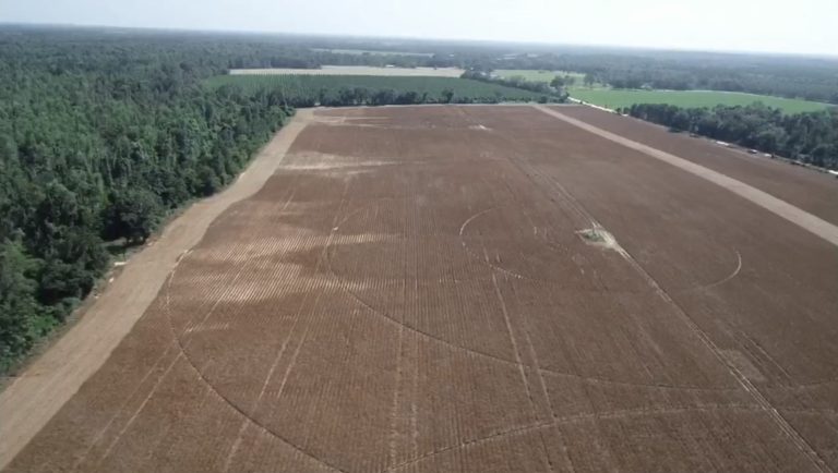 An aerial view of crop damage caused by deer. (Photo courtesy of Alabama Extension.)