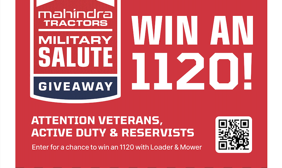 To learn more about the Military Salute Giveaway and nominate yourself or someone you know, please visit www.mahindrausa.com/sweepstakes/.