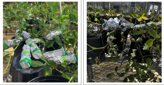 Peanut production is affected by many soil-borne pathogens, which reduce peanut yield and quality. Among many important pathogens is the Peanut ring nematode (Mesocriconema ornatum), a microscopic worm capable of causing necrotic lesions on pods, pegs, and roots. Peanut ring nematode does not always cause obvious aboveground symptoms. The feeding, however, can expose peanut to other pathogens. This exposure caused by ring nematode has been reported to result in greater yield and quality losses.