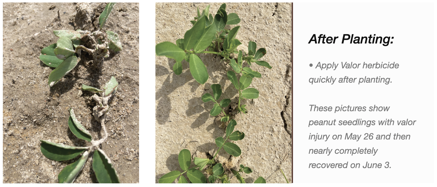 Monfort says if you also have to irrigate to keep the crop growing vigorously at the early stage, do that as well. There will be injury, but years of research have shown that peanuts grow out of the injury, and it does not affect yield. What does affect yield is early season weed competition.