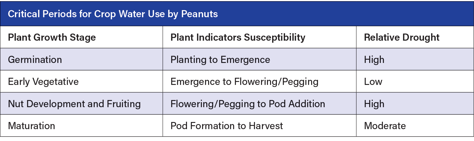 Peanuts’ water requirement changes as the crop grows. An irrigation scheduling method helps producers stay on top of the crop’s needs.