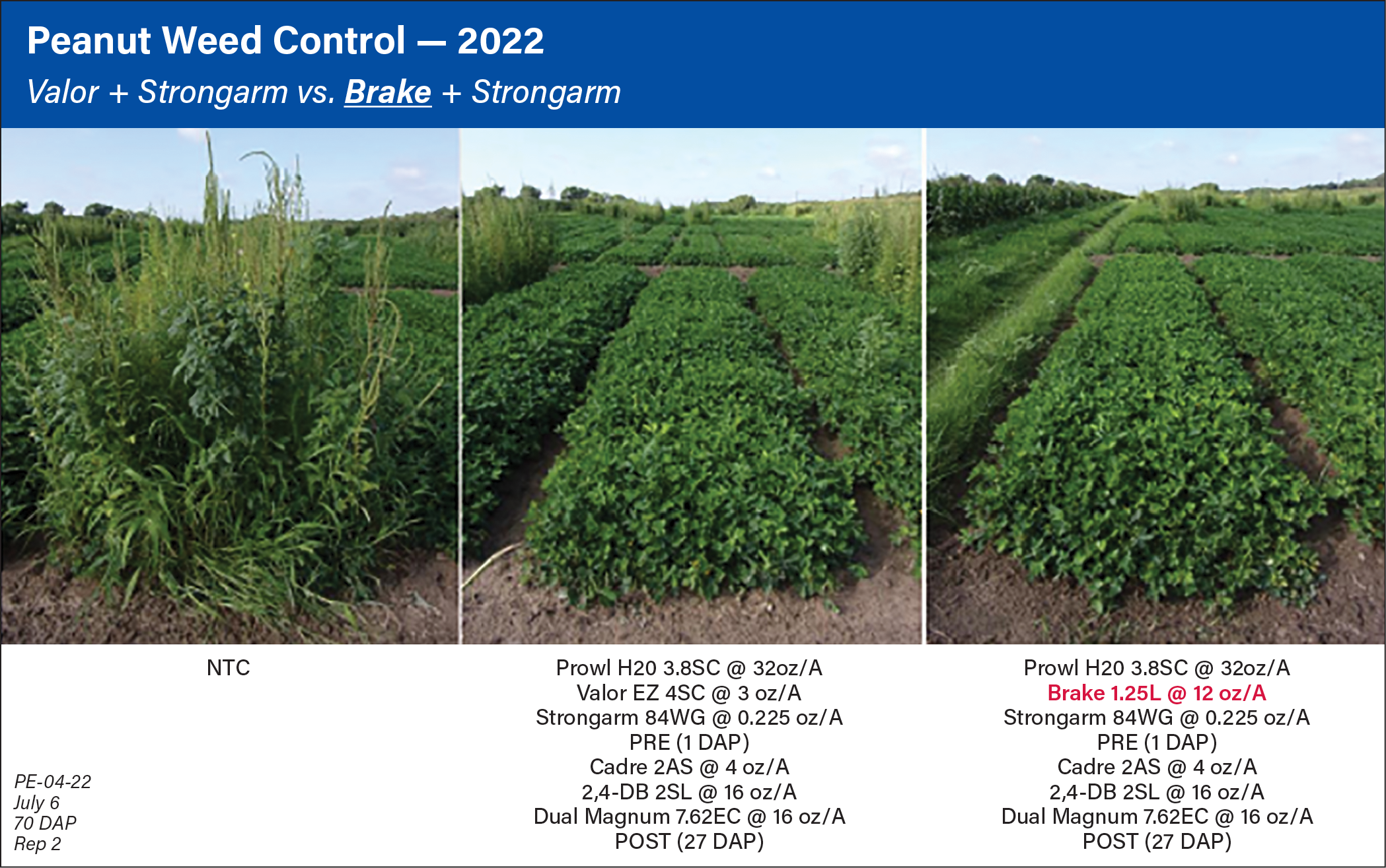 A: Brake is very effective on Palmer amaranth and adds an additional herbicide MOA to the peanut weed control toolbox, which is extremely beneficial for resistance management.