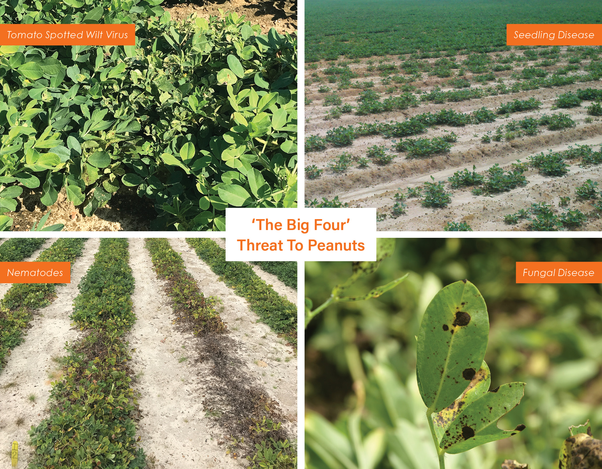 According to University of Georgia Extension plant pathologist Bob Kemerait, the peanut crop has its own Big Four: Tomato Spotted Wilt Virus, seedling disease, nematodes and the fungal diseases leaf spot and white mold. In production meetings this spring, Kemerait referred to these as the four horsemen of the apocalypse, a Biblical reference to the harbingers of the end times. Any way you look at it, these four are critical threats to the peanut crop with the potential to kill the plant quickly or rob yields in the end. The only time to combat three of these problems is at planting, something that can be overlooked at the time.