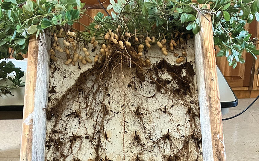 “The way we went about doing that is to cut or mow the peanut plants so that it would stop transpiration. Then, we were also looking at historical rainfall data to time the cutting,” he says.