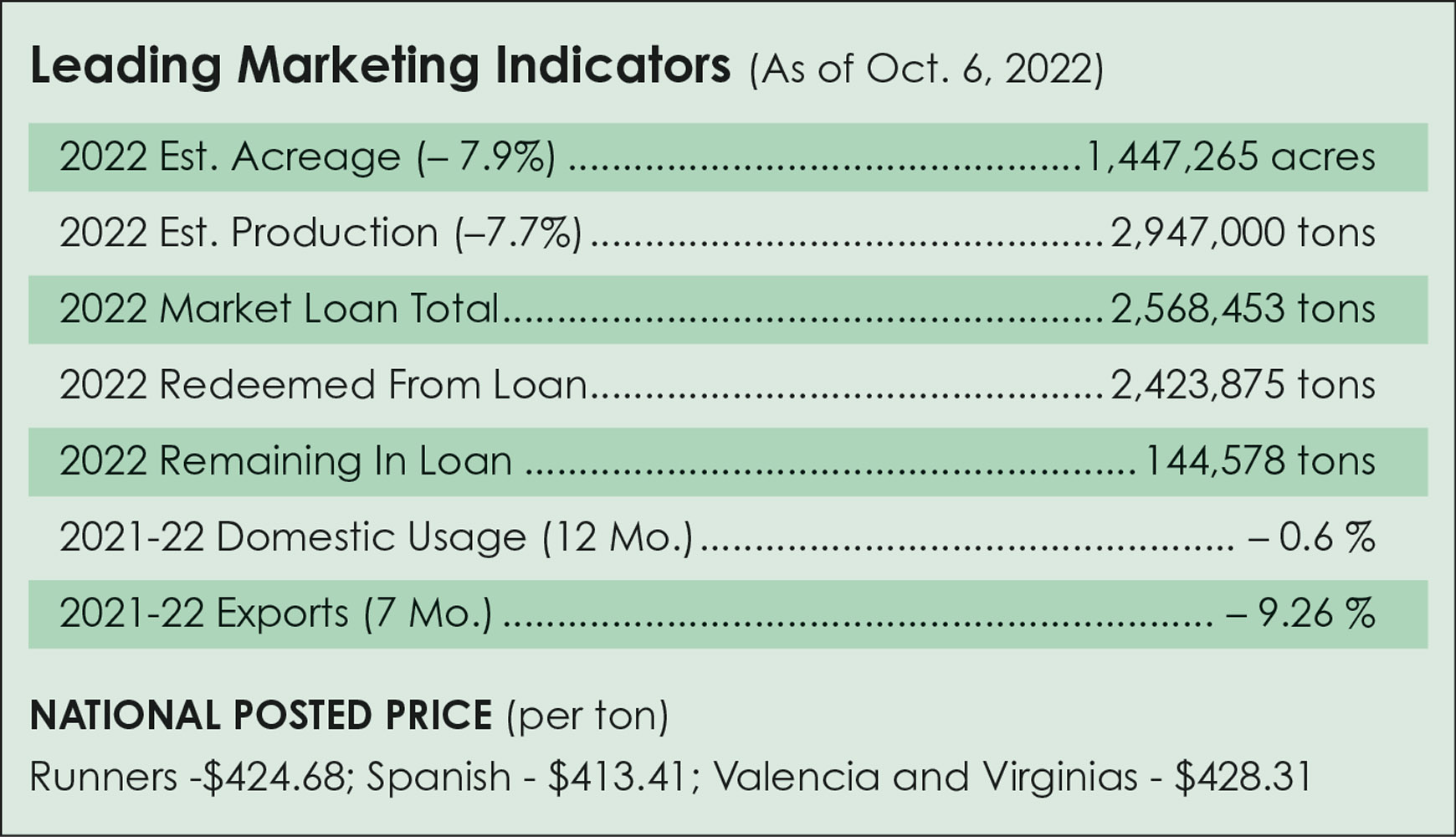 USDA estimated the crop at 2.9 million tons in 2022, down 6% from the previous forecast and down 8% from 2021. Planted area at 1.46 million acres is down 8% from 2021. Area harvested is expected to total 1.41 million acres, down 6% from the previous forecast and down 9% from 2021.
