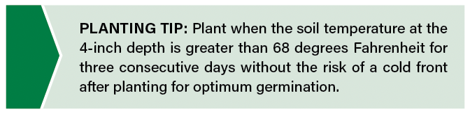 Optimum soil temperature for peanut germination is at least 68 degrees F for three consecutive days without a cold front in forecast. In 2024, the soil temperature in Seminole, Texas, was suitable for planting by April 25, which was roughly three days earlier than the five-year average temperature in the area. Cold snaps and dry soil conditions can slow down germination of peanut and cotton. The longer seeds stay in the soil, the more susceptible they become to soilborne and seedling diseases. You are always encouraged to take the soil temperature recording directly from your fields.