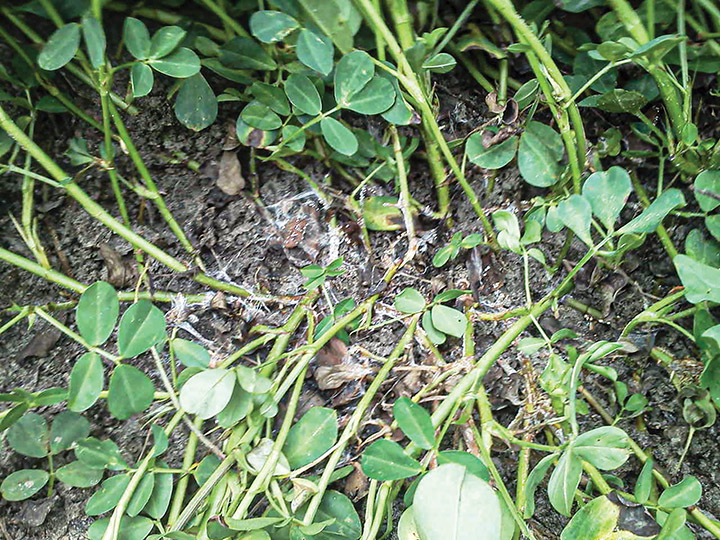 Common diseases found in the Southwest are pod rots, early and late leaf spots, Aspergillus crown rot and Sclerotinia blight. Research shows that a preventative fungicide application is more effective compared to the curative fungicide application after the observation of disease symptoms. However, weekly scouting is very important. Check and record severity of disease infestation, and look for incidence of new disease(s) if any.